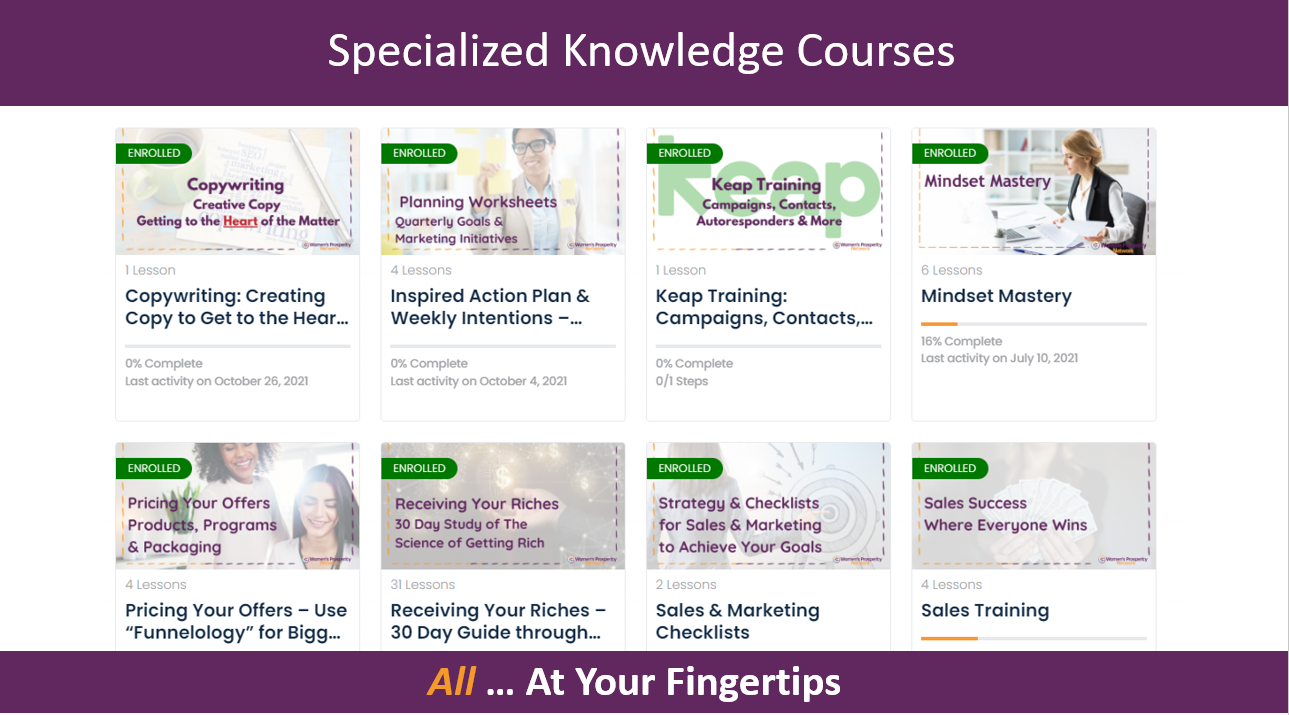 One-on-One Coaching, Weekly Expert Advice, Coaching, Peer-to-Peer Support, Best Practicies for Marketing, Sales and Ongoing Professional & Personal Development